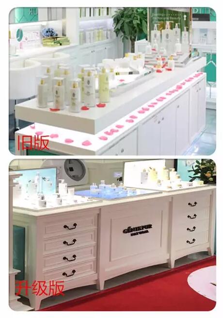 升级版的专柜,整体设计简洁又不失大气。让每一个到店的顾客都舒适愉悦,轻松享受护肤体验。